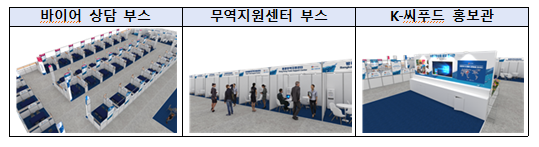 □ 행사 개요 ㅇ (일시/장소) ‘25.11.5.(수) ~ 8(금), 3일간 / BEXCO 제1전시장(1층) ㅇ (참여대상) 수출기업, 내수기업, 국내·외 바이어 등 □ 무역상담회 주요 내용 ㅇ 바이어 상담부스에서 해외 바이어와 수출업체간 1:1 매칭 상담 지원 ㅇ 무역지원센터 부스 운영을 통해 국내 수출기업 대상 국가별 무역애로 상담 및 지원 ㅇ K-씨푸드 홍보관 운영을 통해 수출 유망상품 홍보