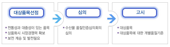 ※ 수산물품질관리심의회의 심의를 거쳐 농림수산식품부장관이 정하여 고시한 품목을 대상으로 함 |