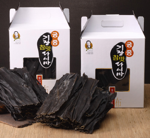 ▶궁중기장참맛다시마 기장연안 맑은 해역에서 양식하여 자연환경의 최적의 위치에서 생성 되었으며 최상부위만(꼭지다시마)선별하였기 때문에 고품질과 기능성(알긴산)식이섬유질이 다량함유 되었습니다. 참맛다시마는 짜지않고 색태가 좋으며 맛과 품질이 우수한 다시마입니다. 궁중기장다시마는 적기에 채취한 원초를 100% 태양 건조하여 맛과 향이 풍부하며 짜지 않고 덜큰한 맛과 섬유질이 많은 다시마를 이용하시기 편리하게 잘란 것이 특징입니다. ▶기장다시마의 특징 기장 인근 맑은 해역의 조류 소통이 좋고 수심이 깊은 곳에서 양질의 원료를 채취하여 자연(태양)건조한 제품이며 엽체가 좁고 두터워서 국물이 진하며 시원한 맛이 살아있는 것이 특징입니다. ▶조리법 1.식수에 깨끗이 세척한 다시마를 100℃ 이상 끊는 물에 부드러워질 때까지 삶은 다음 다시마를 건져낸 후 다시물은 유리병 또는 용기에 담아서 조미료 대신 사용하시면 시원한 맛과 깔끔한 국맛을 내는데 일품입니다. 이때 다시마와 멸치, 무를 함께 사용하면 더 맛있는 육수가 됩니다. 2.삶은 다시마는 일정 크기로 잘라 쌈 또는 젓갈, 회초장 등에 찍어 드시면 덜큰한 다시마 맛을 즐길 수 있습니다. 3.다시마 튀김을 하실 때는 마른 수건으로 닦은 후 튀김가루에 무쳐 식용유에 튀기면 짜지 않고 맛이 좋습니다. 천연조미료로 국거리, 찌게거리에 다시용으로 가장 많이 쓰이는 제품으로 용도에 따라 튀각이나 쌈 용도로도 드실 수 있습니다. 맛있는 조리법을 참고하시어 국거리에 이용하시면 더욱 깊은 맛을 느낄 수 있습니다. ▶보관방법 직사광선은 피하고 개봉후 남은 제품은 간이 필 우려가 있으니 밀봉 보관하십시오. |