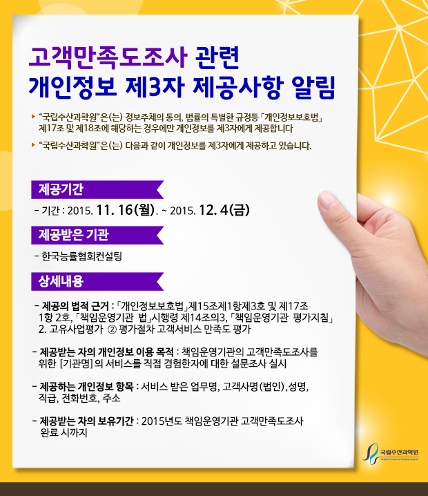 2015년 고객만족도 조사 관련 개인정보 제3자 제공사항 알림