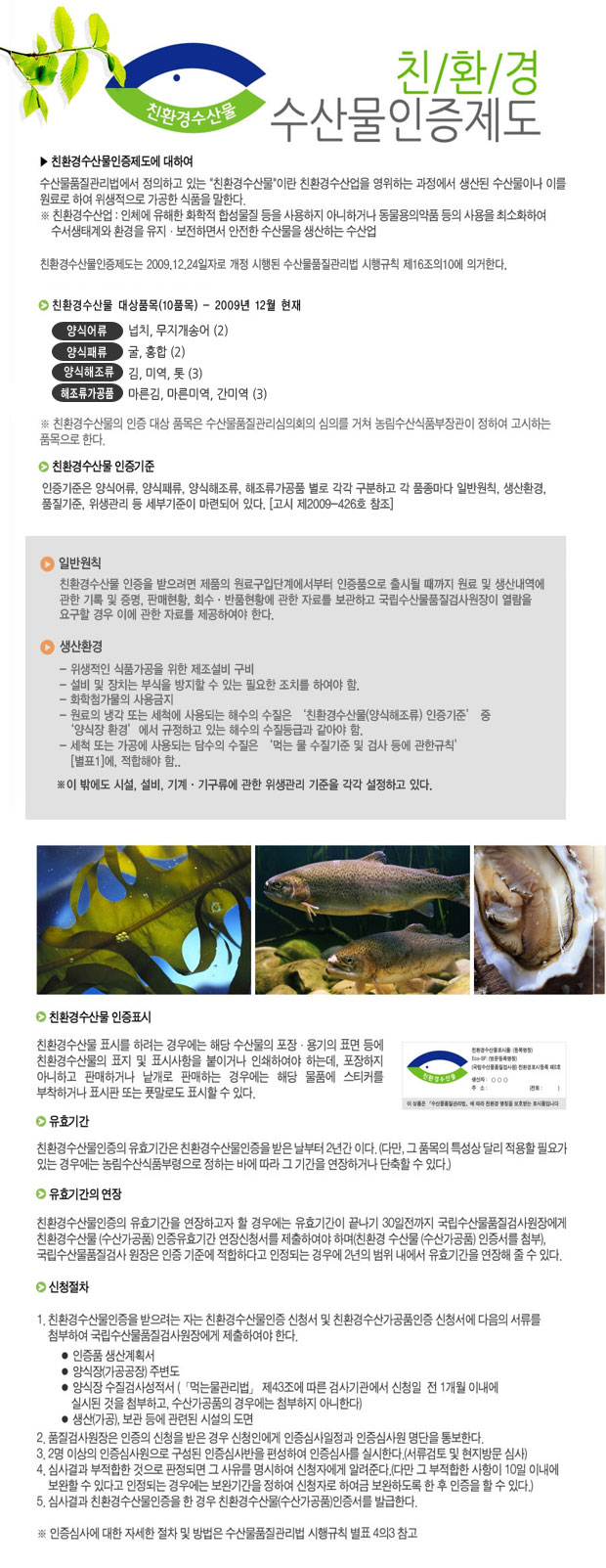 친환경수산물인증제도에 대하여